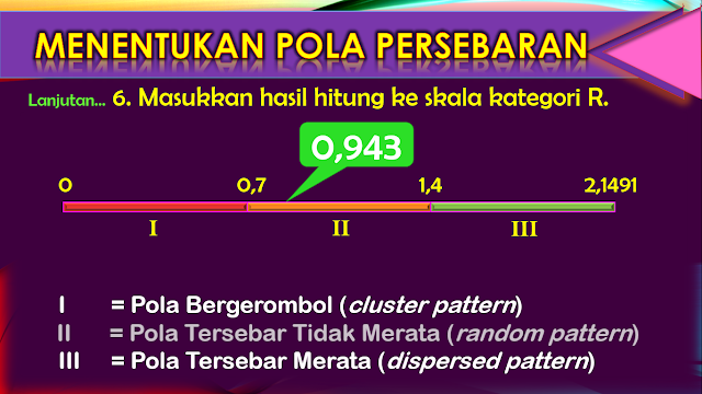 Analisis Tetangga Terdekat digunakan untuk menentukan atau mengkategorikan pola persebaran suatu obyek di permukaan Bumi. Analisis ini menggunakan rumus yang menghasilkan nilai tetangga terdekat lalu dimasukkan ke dalam skala: